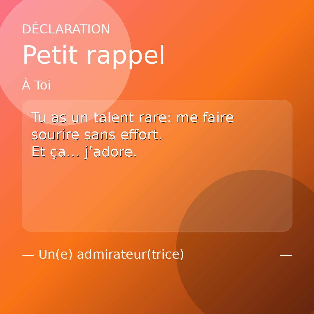Tu as un talent rare: me faire sourire sans effort. Et ça… j’adore.