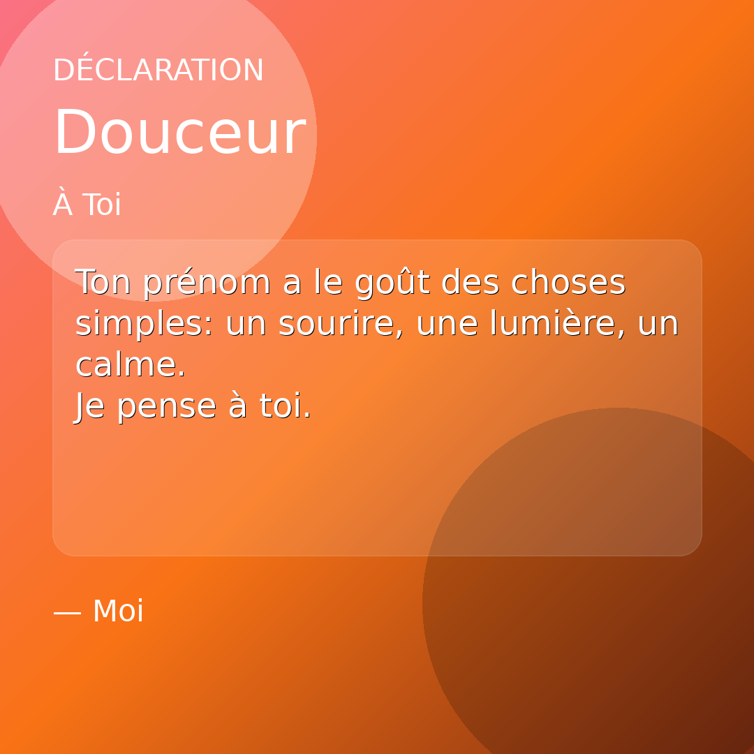 Ton prénom a le goût des choses simples: un sourire, une lumière, un calme. Je pense à toi.
