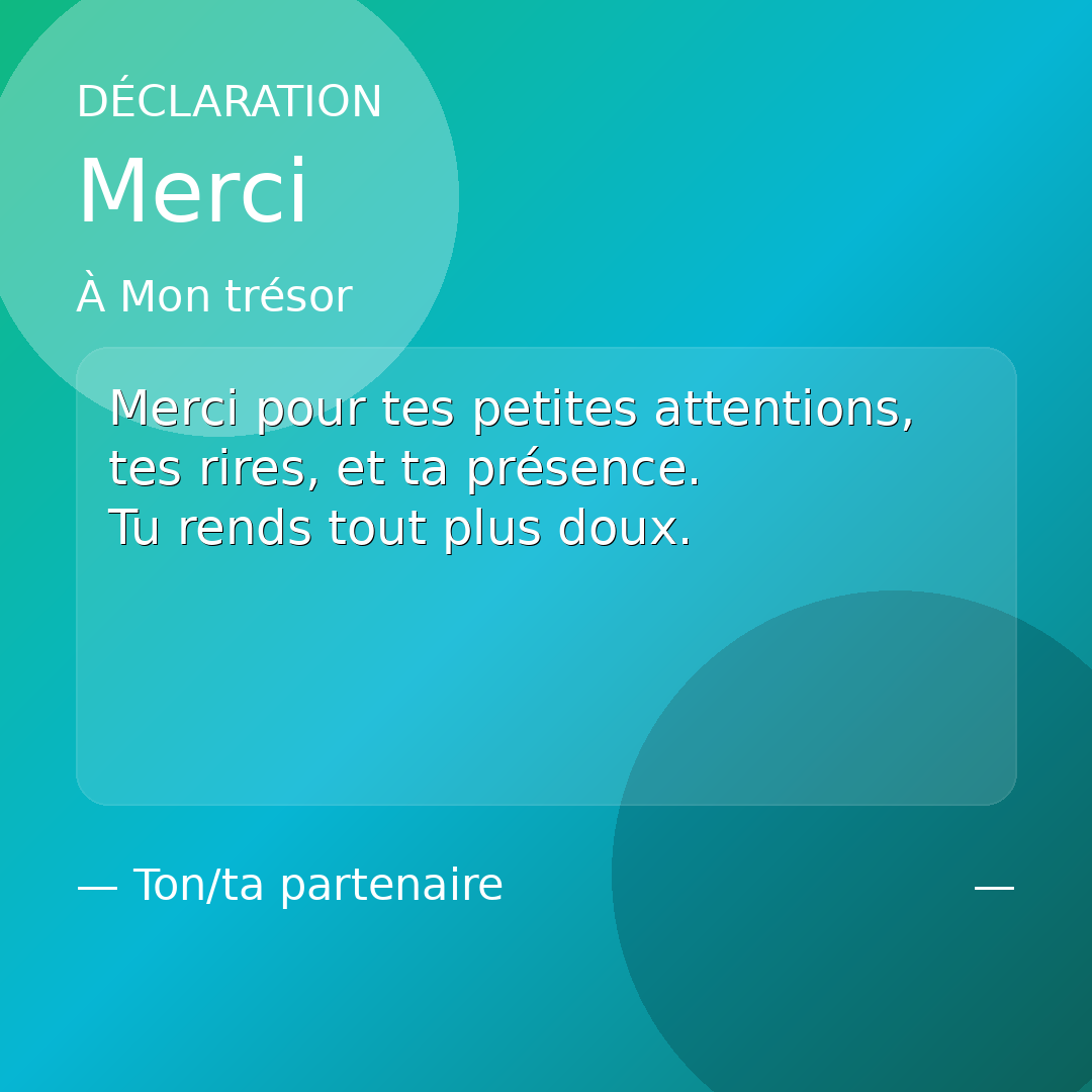 Merci pour tes petites attentions, tes rires, et ta présence. Tu rends tout plus doux.